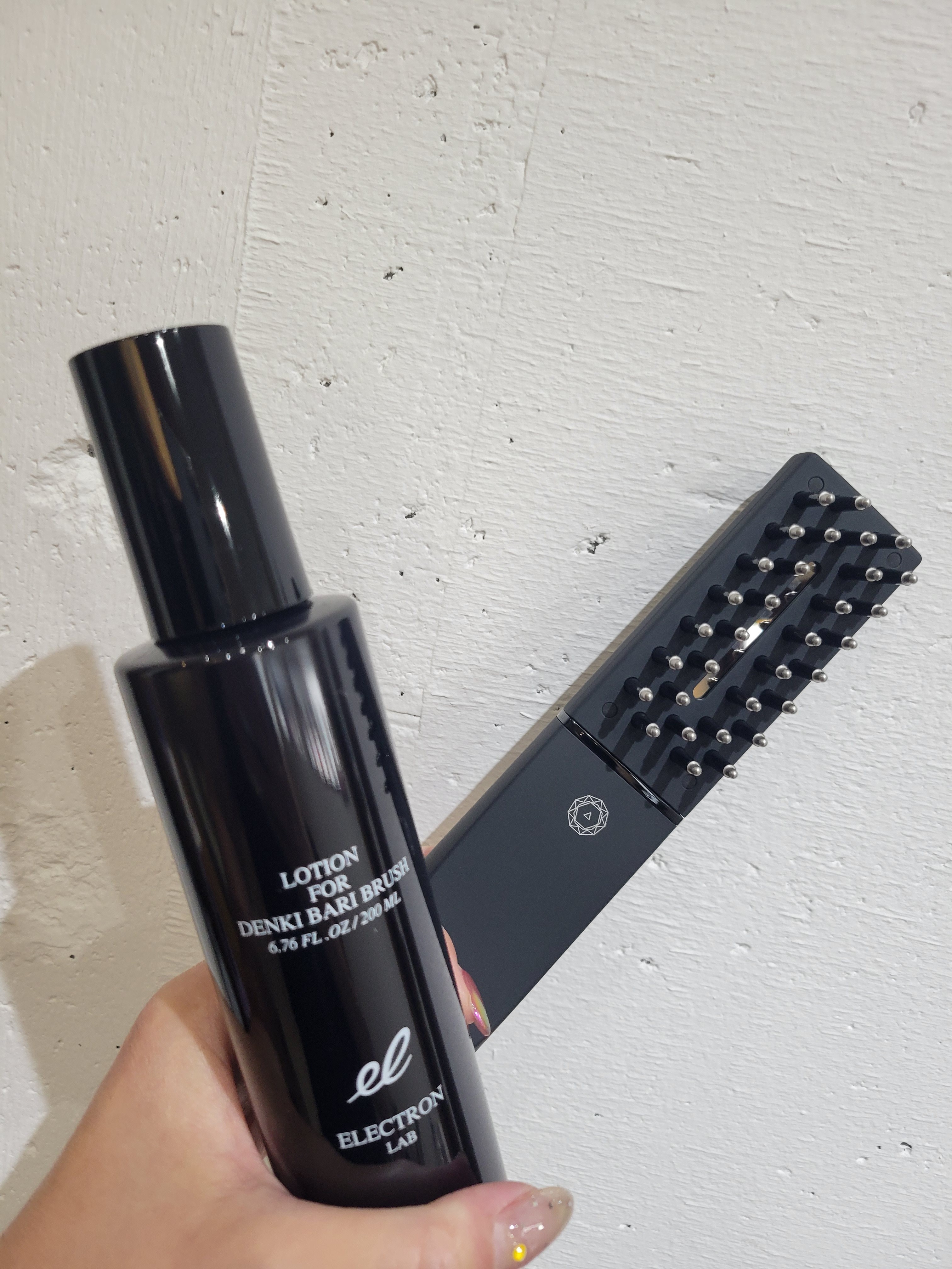 ブラシの先端に低周波の電流がついていて頭皮、顔、肩、ふくらはぎなどに通電しやすいローションをつけてゆっくりなぞります。